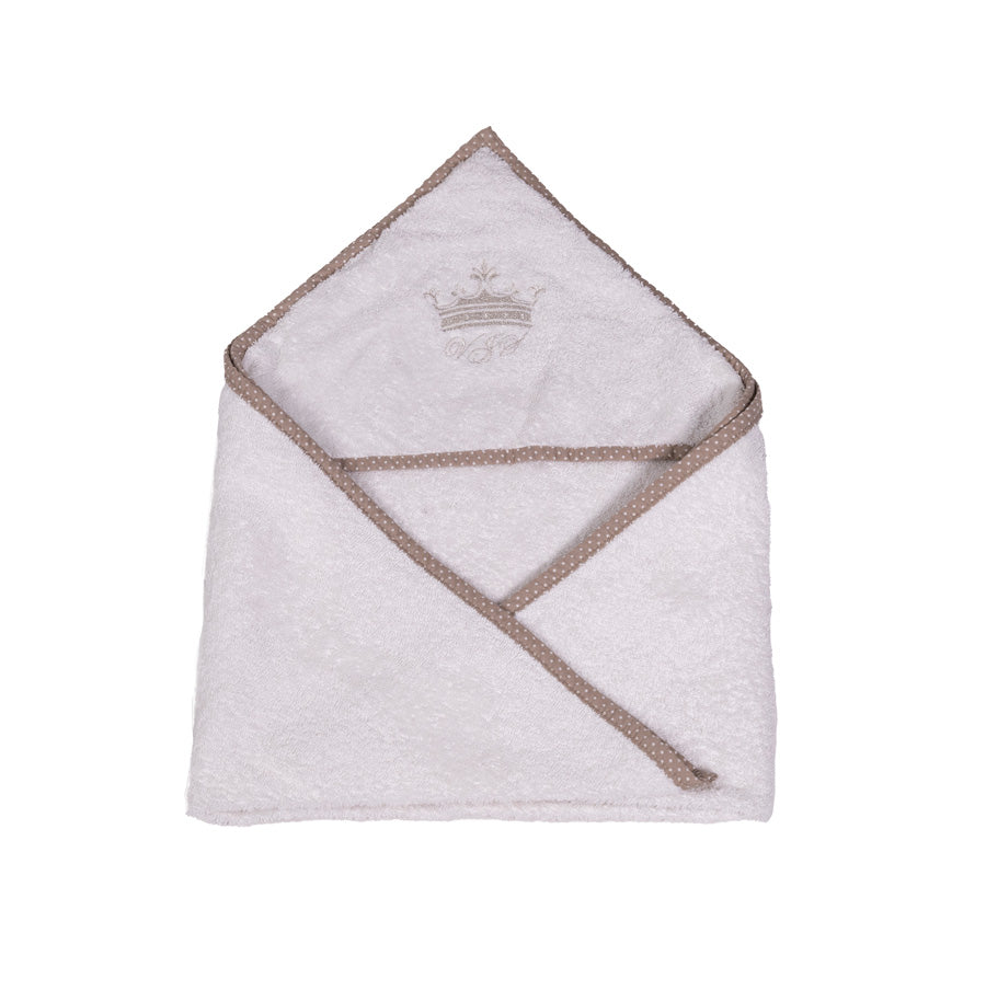 Premium Frotteehandtuch mit Kapuze - creme mit braunem Rand