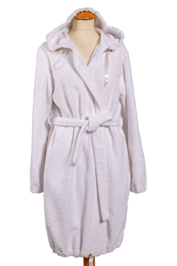 The VJSnature women's bathrobe offers you ultimate pleasure and relaxation due to its softness, absorbency and elegant appearance. The handmade bathrobe made of sustainable materials gives the appearance of sophistication and difference. The bathrobe has a comfortable and functional hood, waistband and pockets, which provides you with maximum comfort. The option of personalization with an embroidered name adds a personal touch.