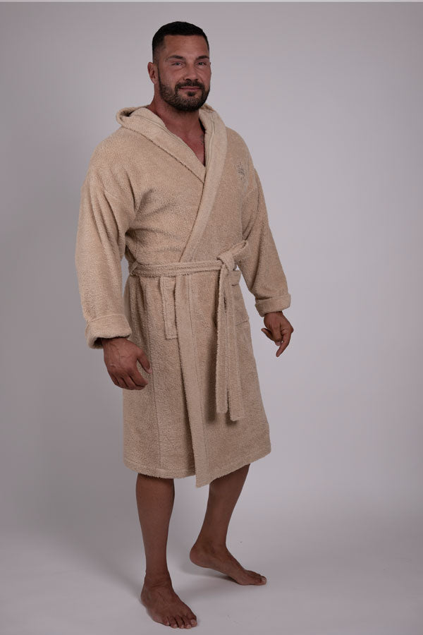 The VJSnature men's bathrobe offers you ultimate pleasure and relaxation due to its softness, absorbency and appearance. The handmade bathrobe made of sustainable materials gives the appearance of sophistication and difference. The bathrobe has a hood, waist and pockets, thus providing you with maximum comfort. The bathrobe can also be personalized with an embroidered name.